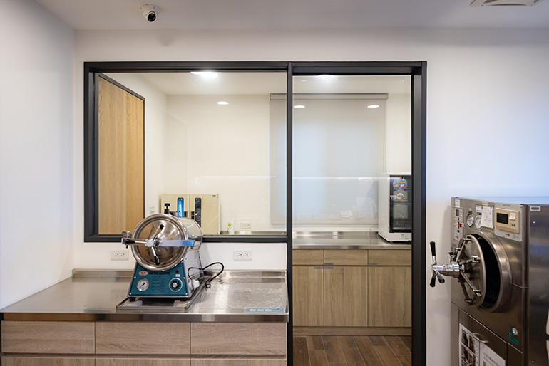 本診所3樓為數位植牙中心,區分為數間植牙手術室,全程採用無菌拋棄式及高溫高壓消毒器械,並備有醫療用殺菌空氣淨化機/醫療循環空調設備及24小時無菌水質檢測系統,讓患者在接受高品質治療的同時,遠離任何感染的危險,感染控制流程比照醫院開刀房等級,大幅增加手術成功率。