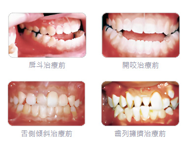 咬合不正也是牙齒矯正的治療內容,包括:齒列擁擠、縫隙、犬齒外突、上下齒列外暴、上下顎骨突出、上下顎前齒錯咬(戽斗)、後牙錯咬(反咬)、開咬、深咬等等。